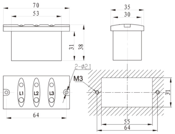 | 安裝尺寸(WxHxD) | 55x31x31 mm (安裝螺釘孔距 64mm) |