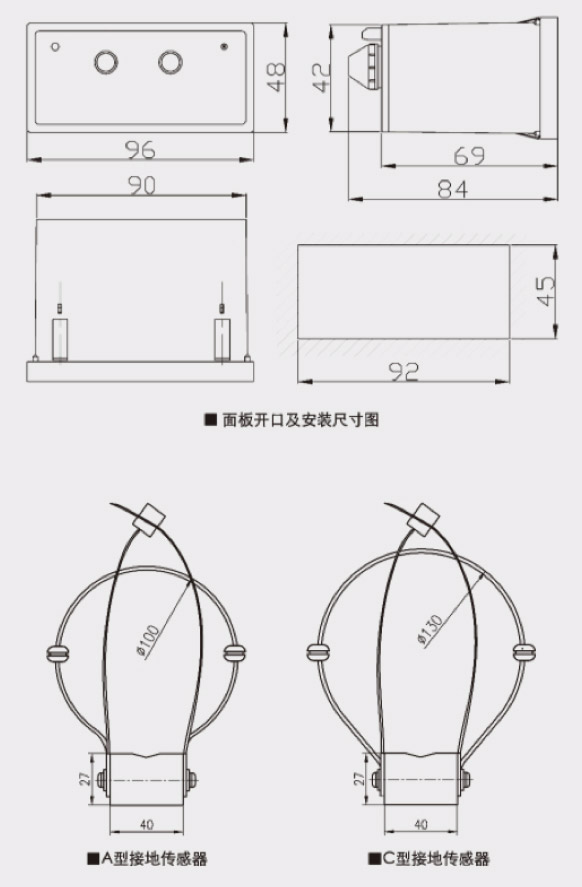 | 傳感器適用電纜外徑 | 接地故障傳感器 | A 型 | Φ60mm~Φ100mm |