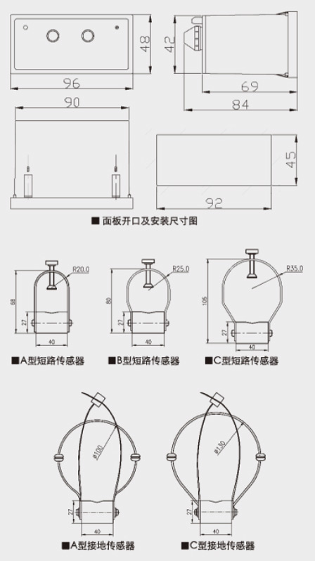 - 短路和接地探測器由3個單相電流傳感器和1個接地電流傳感器組成