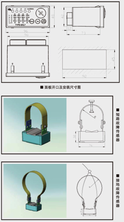 - 短路和接地探測器由3個單相電流傳感器和1個接地電流傳感器組成